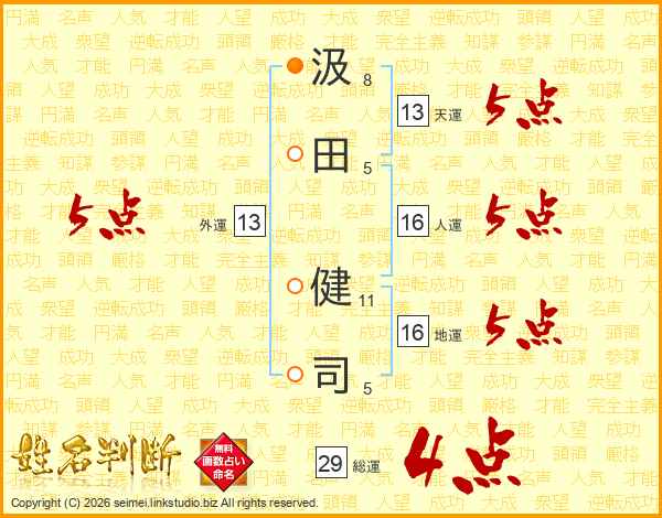 汲田健司さんの総運は29画の4点!