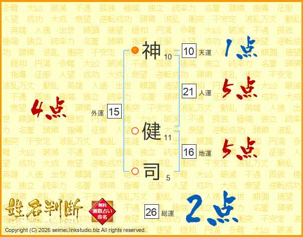 神健司さんの総運は26画の2点!