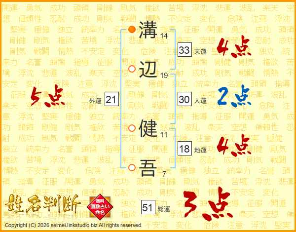 溝辺健吾さんの天運は33画の4点!