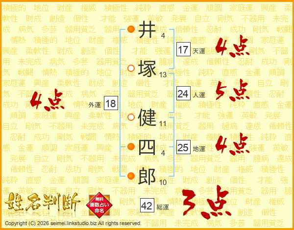 井塚健四郎さんの天運は17画の4点!