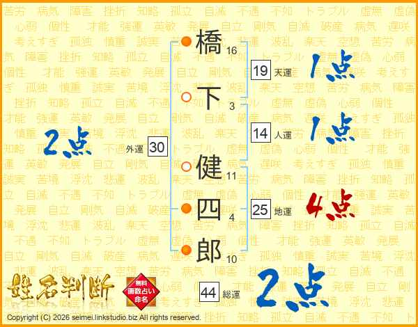橋下健四郎さんの総運は44画の2点!