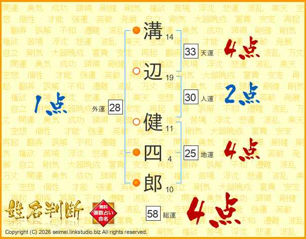 溝(14画)辺(19画) 健(11画)四(4画)郎(10画)