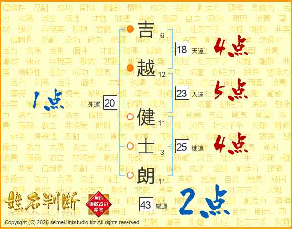 吉越健士朗さんの総運は43画の2点!