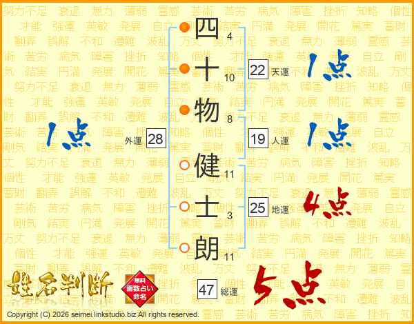 四十物健士朗さんの総運は47画の5点!