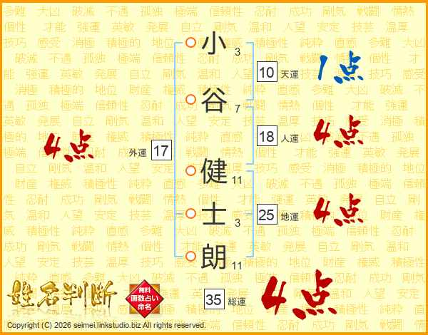 小谷健士朗さんの総運は35画の4点!