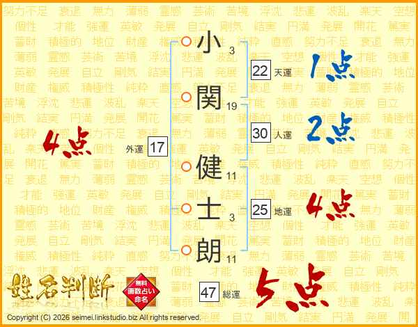 小関健士朗さんの総運は47画の5点!