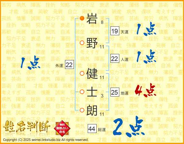 岩野健士朗さんの地運は25画の4点!