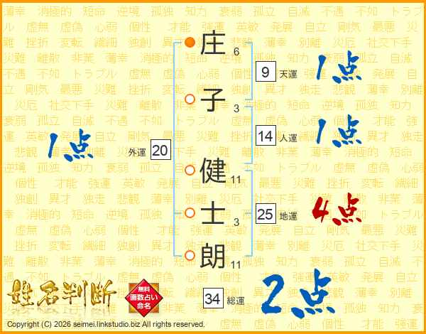 庄子健士朗さんの総運は34画の2点!