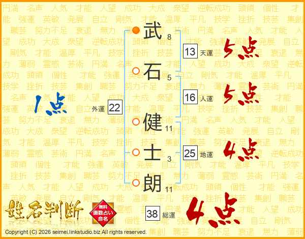 武石健士朗さんの総運は38画の4点!