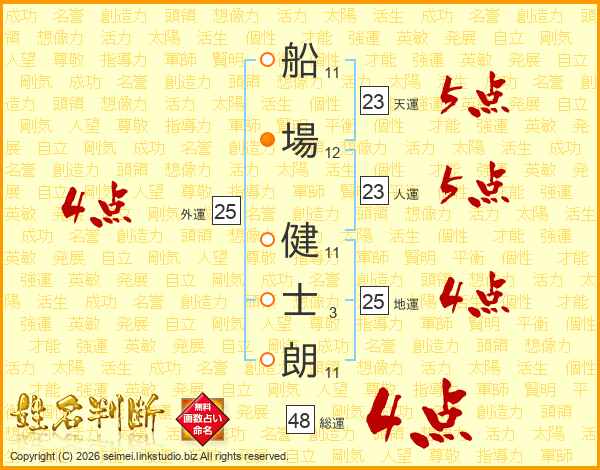 船場健士朗さんの総運は48画の4点!