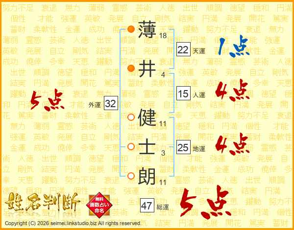 薄井健士朗さんの総運は47画の5点!