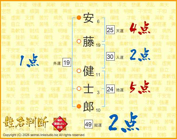 安藤健士郎さんの天運は25画の4点!