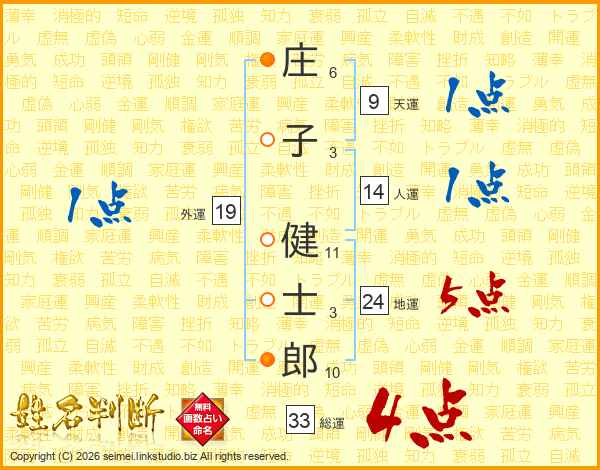 庄子健士郎さんの総運は33画の4点!