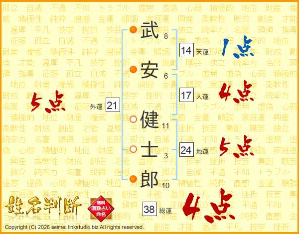 武安健士郎さんの総運は38画の4点!