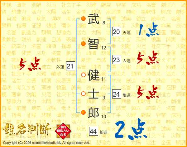武(8画)智(12画) 健(11画)士(3画)郎(10画)