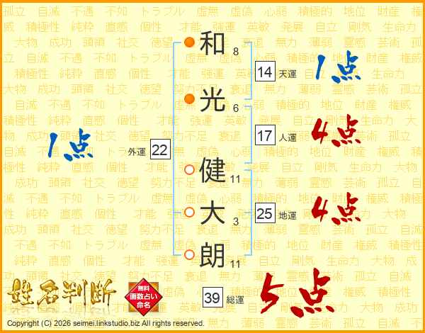 和光健大朗さんの総運は39画の5点!