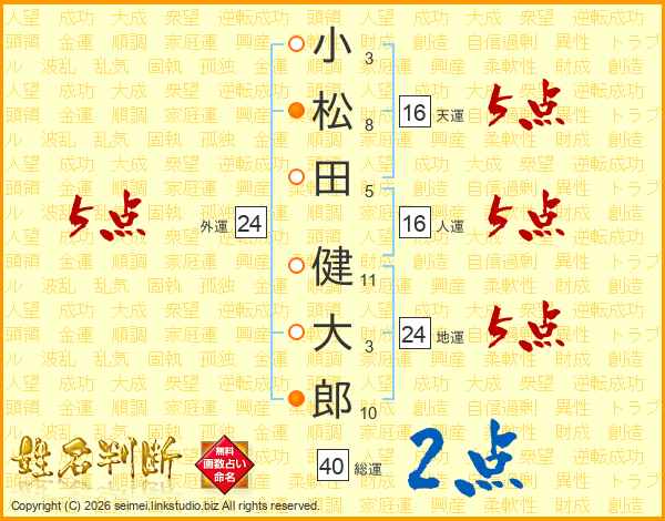 小松田健大郎さんの地運は24画の5点!