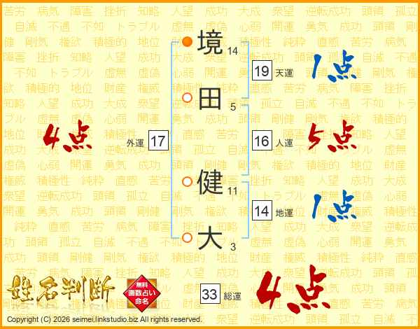 境田健大さんの総運は33画の4点!