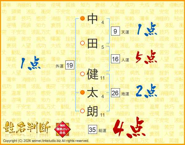 中田健太朗さんの地運は26画の2点!