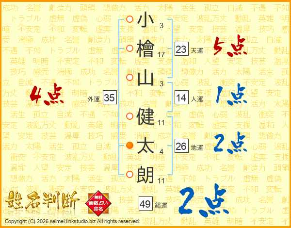 小檜山健太朗さんの総運は49画の2点!
