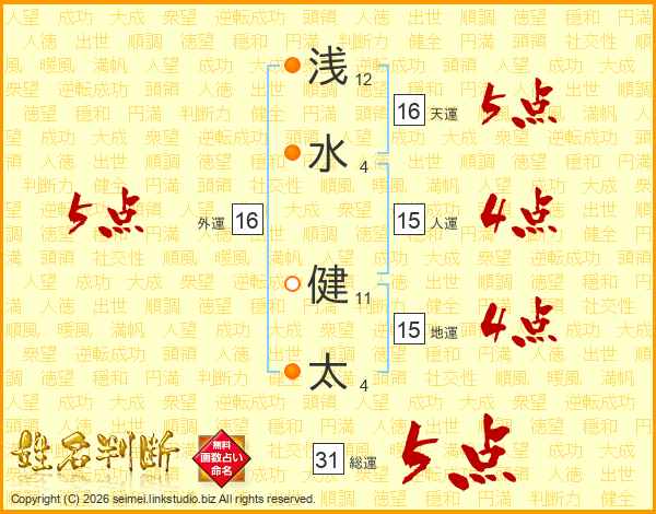 浅水健太さんの総運は31画の5点!