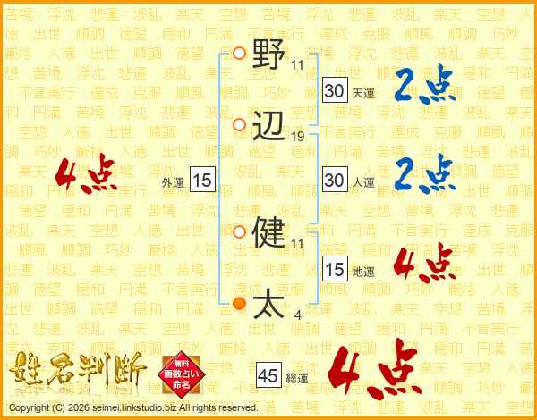 野辺健太さんの総運は45画の4点!