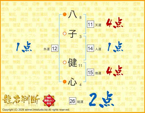 八子健心さんの総運は26画の2点!