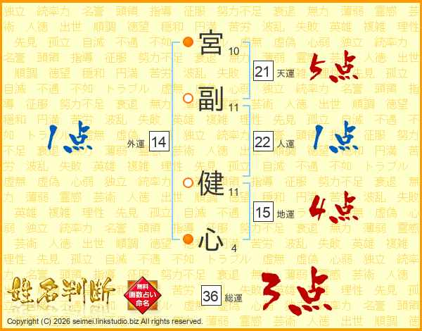 宮副健心さんの天運は21画の5点!