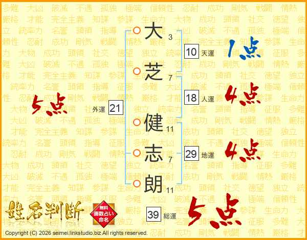 大芝健志朗さんの総運は39画の5点!