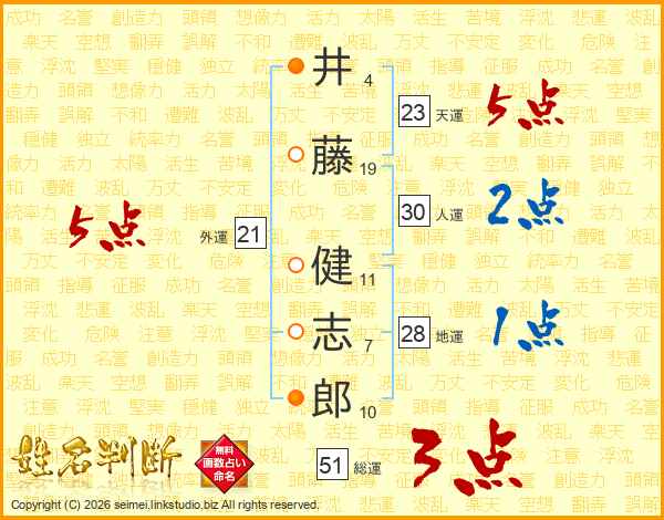 井藤健志郎さんの天運は23画の5点!