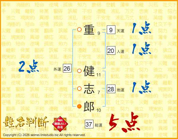重健志郎さんの総運は37画の5点!