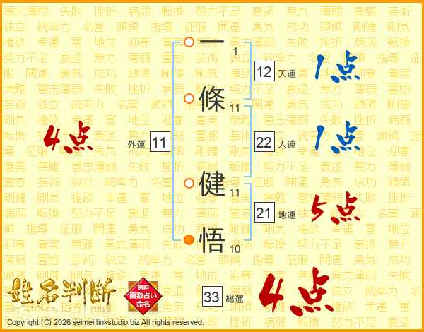 一條健悟さんの総運は33画の4点!