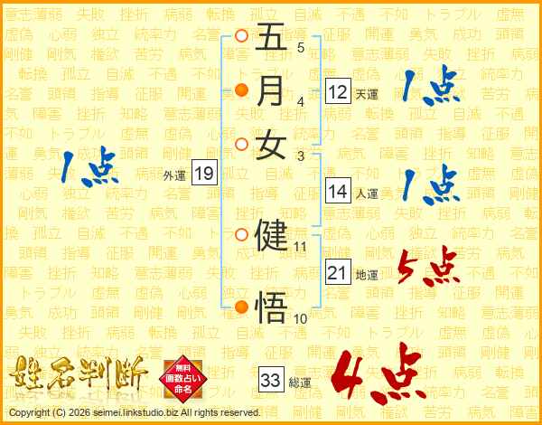 五月女健悟さんの総運は33画の4点!