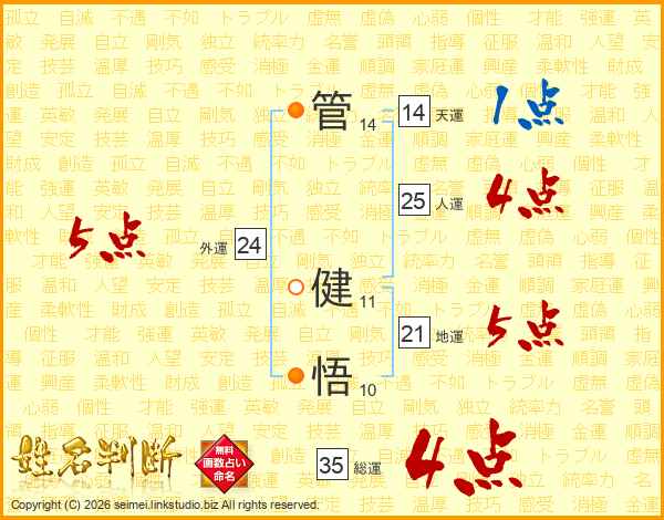 管健悟さんの総運は35画の4点!