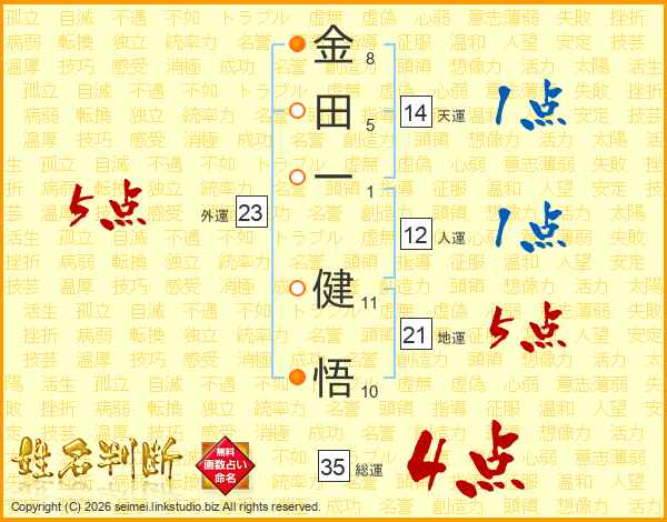金田一健悟さんの総運は35画の4点!
