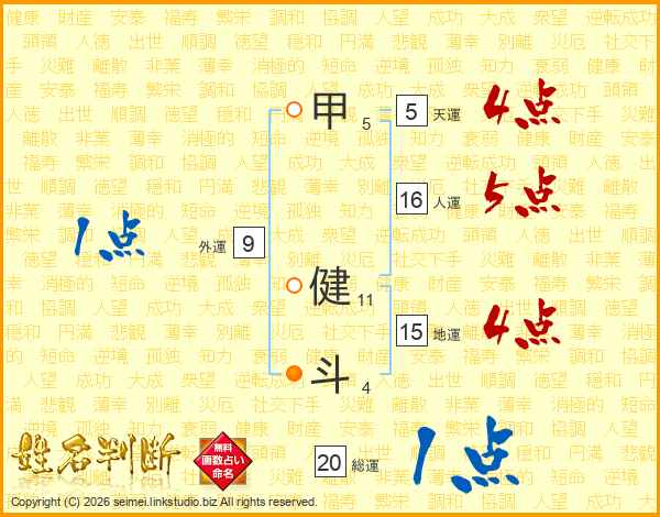 甲健斗さんの総運は20画の1点!