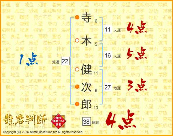 寺(6画)本(5画) 健(11画)次(6画)郎(10画)