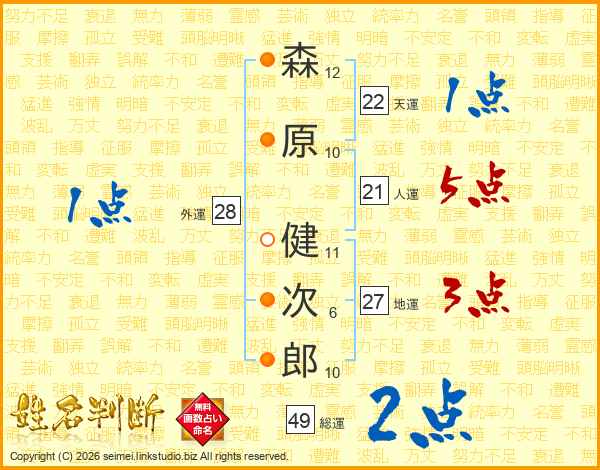 森原健次郎さんの人運は21画の5点!