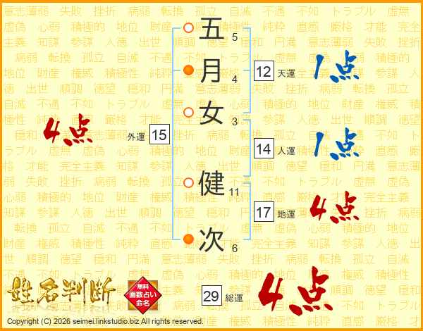 五月女健次さんの総運は29画の4点!