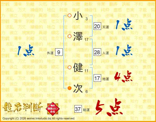 小澤健次さんの総運は37画の5点!