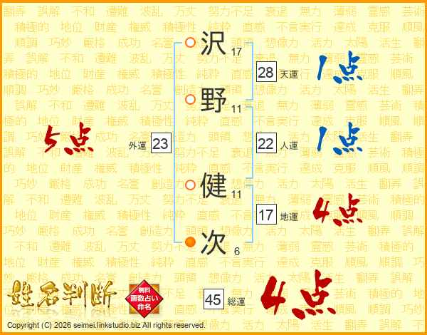 沢野健次さんの総運は45画の4点!