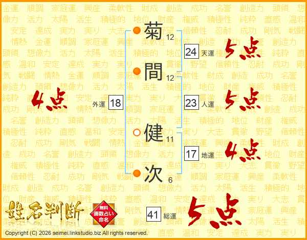 菊間健次さんの総運は41画の5点!
