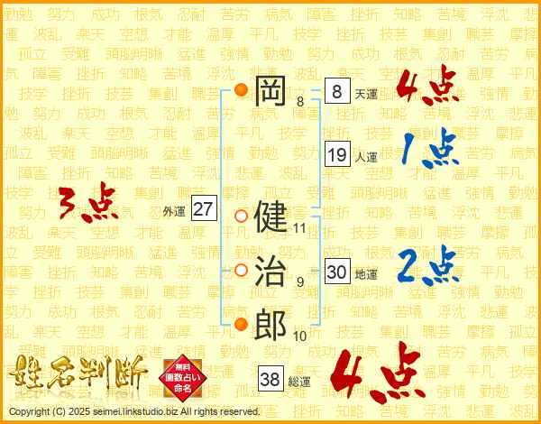 岡健治郎さんの総運は38画の4点!
