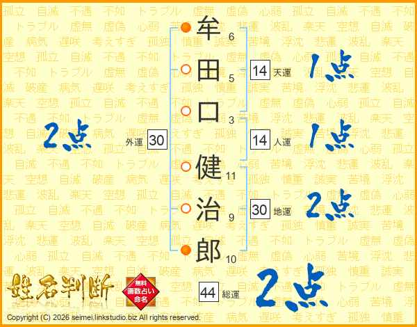 牟田口健治郎さんの人運は14画の1点!