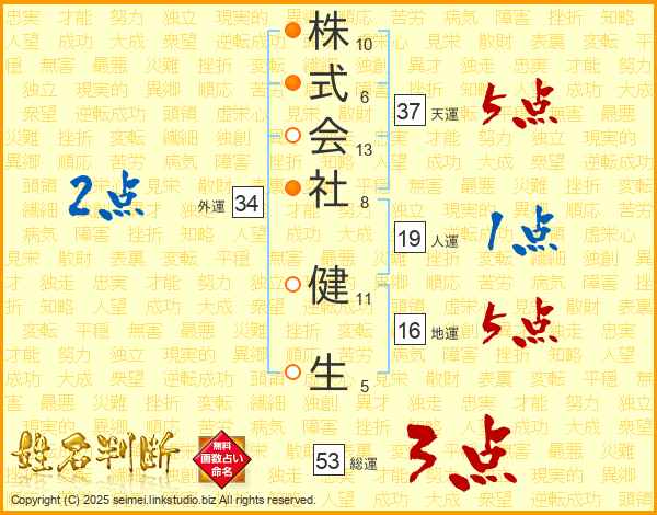株式会社健生さんの天運は37画の5点!