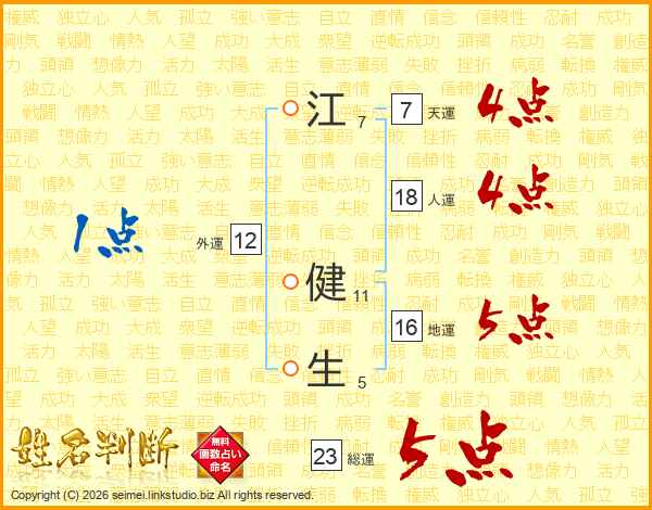 江(7画) 健(11画)生(5画)