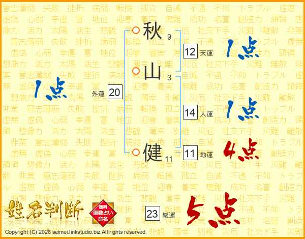 秋(9画)山(3画) 健(11画)
