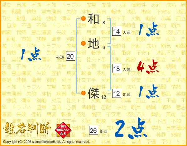 和地傑さんの総運は26画の2点!