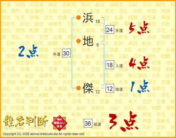浜地傑さんの総運は36画の3点!