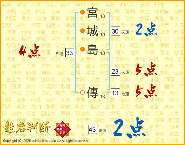 宮城島傳さんの総運は43画の2点!